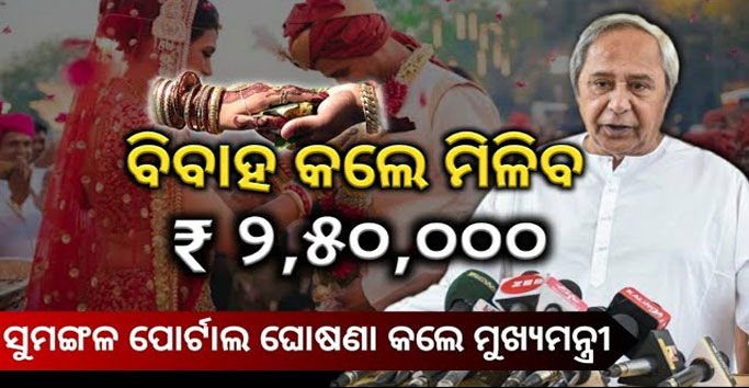 କହିବାକୁ ଗଲେ ଓଡିଶାର ମୁଖ୍ୟମନ୍ତ୍ରୀ ନବୀନ ପଟ୍ଟନାୟକ ଓଡିଶାବାସୀଙ୍କୁ ଏକ ଉପହାର ଦେଇଛନ୍ତି । ଯାହା ବିଷୟରେ ଜାଣିବା ପରେ ଆପଣ ବି ଖୁସିରେ ନାଚି ଉଠିବେ । ଏହି ନୂଆ ଉପହାର ଅନ୍ତର୍ଗତ ଓଡିଶା ସରକାର ବିବାହ କରିବା ପାଇଁ ଆପଣଙ୍କୁ ୨ ଲକ୍ଷ ୫୦ ହଜାର ଟଙ୍କା ଦେବେ । ମୁଖ୍ୟମନ୍ତ୍ରୀ ନବୀନ ପଟ୍ଟନାୟକ ସୁମଙ୍ଗଳ ପୋର୍ଟାଲର ଶୁଭାରମ୍ଭ କରି ଏହି ଯୋଜନାକୁ ଆରମ୍ଭ କରିଛନ୍ତି । ଏହା ଜରିଆରେ ବିବାହ କରିଥିବା ବ୍ୟକ୍ତିଙ୍କୁ ୨ ଲକ୍ଷ ୫୦ ହଜାର ଟଙ୍କା ମିଳିବ ।