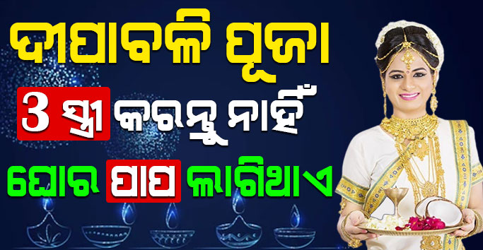 ବନ୍ଧୁଗଣ ହିନ୍ଦୁ ପଞ୍ଚାଙ୍ଗ ଅନୁଯାୟୀ ଦୀପାବଳି ପର୍ବ ଅକ୍ଟୋବର ୨୪ ତାରିଖ ସୋମବାର ଦିନ କାର୍ତ୍ତିକ ମାସ ଅମାବାସ୍ୟା ଦିନ ପାଳନ କରାଯାଏ । ଏହି ଦିନ ଋଦ୍ଧି ସିଦ୍ଧି ଦାତା ଭଗବାନ ଗଣେଶ ଓ ମା ଲକ୍ଷ୍ମୀ ଙ୍କ ପୂଜା କରିବାର ବିଧାନ ରହିଛି । ଏହି ଦିନ ଧନର ଦେବତା କୁବେର ମହାରାଜା, ମା କାଳୀ ଙ୍କ ମଧ୍ୟ ପୂଜନ କରାଯାଏ । ଦୀପାବଳି ପର୍ବ ହେଉଛି ଆଲୋକର ପର୍ବ । ଏହି ଦିନରେ ଅନ୍ଧାର ର ଅନ୍ତ ହୋଇ ଆଲୋକର ବିଜୟ ହୋଇଥାଏ । ଆଜି ଆମେ ଆପଣଙ୍କୁ ଦୀପାବଳି ପୂଜାରେ କେଉଁ ୩ ଜଣ ସ୍ତ୍ରୀ ପୂଜା କରିଲେ ଘୋର ପାପ ଲାଗିଥାଏ ସେହି ବିଷୟରେ କହିବାକୁ ଯାଉଛୁ ।