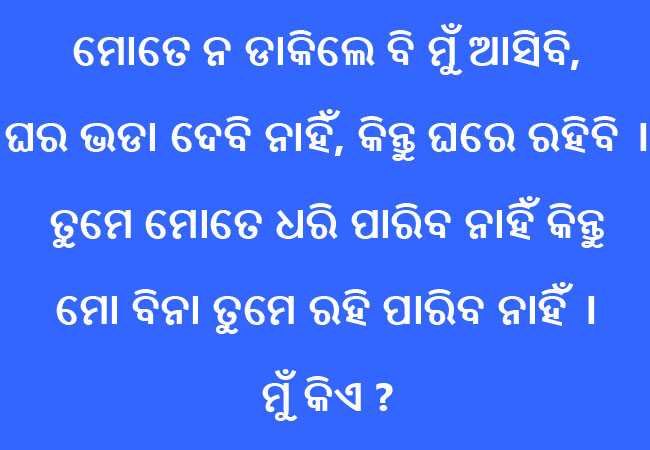 ଆଜି ଆମେ ଆପଣଙ୍କୁ ଏମିତି କିଛି ପ୍ରଶ୍ନ ପଚାରିବୁ ଯାହାର ଉତ୍ତର ବହୁତ କମ ଲୋକ ଦେଇ ପାରିବେ । ତେବେ ଚାଲନ୍ତୁ ଜାଣିବା ସେହି ପ୍ରଶ୍ନ କଣ ?