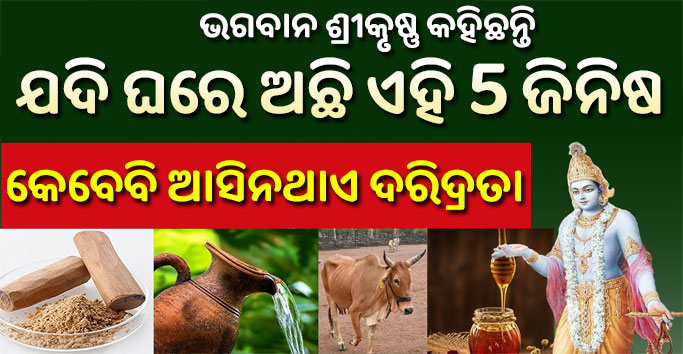 ବନ୍ଧୁଗଣ ନମସ୍କାର, ବନ୍ଧୁଗଣ ଥରେ ଭଗବାନ ଶ୍ରୀକୃଷ୍ଣ ଙ୍କୁ ସାକ୍ଷାତ କରିବା ନିମନ୍ତେ ଯୁଧିଷ୍ଠିର ତାଙ୍କ ରାଜ୍ୟ କୁ ଆସିଥିଲେ। ଯୁଧିଷ୍ଠିର ଶ୍ରୀକୃଷ୍ଣ ଙ୍କୁ ପଚାରିଥିଲେ ଯେ, କେଉଁ ଜିନିଷ ଘରେ ରହିବା ଦ୍ୱାରା ଘରେ ସୁଖ ଓ ସମୃଦ୍ଧି ସ୍ଥାପନ ହୋଇଥାଏ? ଶ୍ରୀକୃଷ୍ଣ ନିଜର ଉତ୍ତର ରେ ୫ଟି ଜିନିଷ ସମ୍ବନ୍ଧରେ ଉଲ୍ଲେଖ କରିଥିଲେ। ଏହି ୫ଟି ଜିନିଷ ସମ୍ବନ୍ଧରେ ବାସ୍ତୁ ଶାସ୍ତ୍ର ରେ ମଧ୍ୟ ଉଲ୍ଲେଖ କରା ଯାଇଛି। ଘରେ ଥିବା ପ୍ରତ୍ୟେକ ଜିନିଷ ମଧ୍ୟରେ କିଛି ଖାସ ଗୁଣ ରହିଥାଏ।