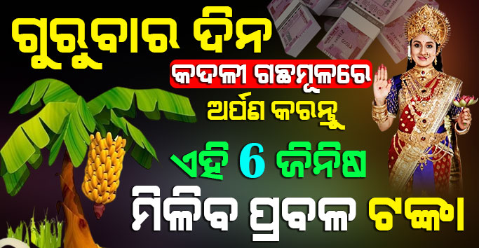ଗୁରୁବାର ଦିନ ମାଥ୍ୟା ଲକ୍ଷ୍ମୀଙ୍କ ଏକ ବିଶେଷ ବୋଲି ମାନାଯାଏ । କୁହାଯାଏ କି ଏହିଦିନ ମା ଲକ୍ଷ୍ମୀଙ୍କ ବିଶେଷ ପୂଜା କଲେ ଭାଗ୍ୟ ଉଦୟ ହେବା ସହ ଭାଗ୍ୟ ଚମକି ଉଠିଥାଏ । ଏହି ଗୁରୁବାର ଦିନ ମାତା ଲକ୍ଷ୍ମୀଙ୍କ ପୂଜା ସହ କଦଳୀ ଗଛମୂଳେ ଯଦି କିଛି ଖାସ ଜିନିଷ ଅର୍ପଣ କରାଯାଏ ତେବେ ଆପଣଙ୍କ ରାଶିରେ ବୃହସ୍ପତି ଗ୍ରହ ମଧ୍ୟ ମଜବୁତ ହୋଇଥାନ୍ତି । ମା ଲକ୍ଷ୍ମୀଙ୍କ ଆଶୀର୍ବାଦ ମଧ୍ୟ ମିଳିଥାଏ ଓ ଘର ଧନଧାନ୍ୟରେ ପୁରି ଉଠିଥାଏ । ଚାଲନ୍ତୁ ଜାଣିବା ମା ଲକ୍ଷ୍ମୀଙ୍କୁ ସନ୍ତୁଷ୍ଟ କରିବାର କିଛି ସରଳ ଉପାୟ ।