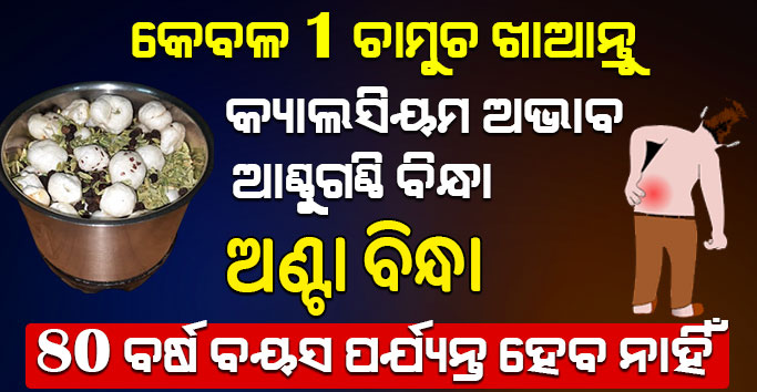ଆମ ଶରୀରରେ କ୍ୟାଲସିୟମ ଅଭାବ କାରଣରୁ ହାଟଗୋଡ ଓ ଅଣ୍ଟା ବିନ୍ଧିଥାଏ, ମାଂସପେଶୀ ଟାଣି ଧରିଥାଏ, ଦୁର୍ବଳ ଲାଗେ ଓ ଉଠିବା ବସିବାରେ ବହୁତ ଅଧିକ ଯନ୍ତ୍ରଣା ହୋଇଥାଏ । ୩୦ ବର୍ଷ ବୟସ ପରେ ଅଧିକାଂଶ ଲୋକଙ୍କ ଶରୀରରେ କ୍ୟାଲସିୟମ ଅଭାବ ଦେଖା ଦେଇଥାଏ ଓ ୪୦ ବର୍ଷ ପରେ ହାଡ ବହୁତ ଅଧିକ ଦୁର୍ବଳ ହୋଇଯାଏ । ତେବେ ଆଜି ଆମେ ଆପଣଙ୍କ ପାଇଁ ଏପରି ଏକ ଘରୋଇ ଔଷଧୀ ବିଷୟରେ କହିବୁ ଯାହାର ସେବନ କରିବା ଦ୍ଵାରା ଆପଣଙ୍କୁ ଜୀବନରେ କେବେବି କ୍ୟାଲସିୟମର ଅଭାବ ଦେଖା ଦେବନାହିଁ ।