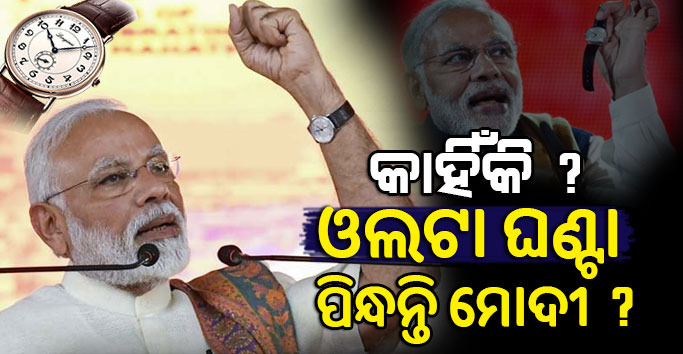 ଆପଣ ଦେଖିଥିବେ କି ମୋଦୀ ସବୁବେଳେ ବାମ ହାତରେ ବେଲ୍ଟ ବାଲା ଘଣ୍ଟା ପିନ୍ଧନ୍ତି । ଆଉଆ ଘଣ୍ଟାର ବେଲ୍ଟ ପ୍ରାୟତଃ କଳା ରଙ୍ଗର ହେବା ସହ ସବୁବେଳେ ଘଣ୍ଟା ହାତରେ ଓଲଟା ହିଁ ରହିଥାଏ । ତେଣୁ ମୋଦୀ କାହିଁକି ଓଲଟା ଘଣ୍ଟା ପିନ୍ଧନ୍ତି ବୋଲି ତାକୁ ନେଇ ଏବେ ଖୁବ ଚର୍ଚ୍ଚା ହେଉଛି । ପ୍ରତି ସଭା ହେଉ କି କୌଣସି ରାଜ୍ୟ କିମ୍ବା ଦେଶକୁ ଗସ୍ତ ହେଉ ସବୁବେଳେ ବାମ ହାତରେ ଘଣ୍ଟା ପିନ୍ଧିଥିବାର ନଜର ଆସନ୍ତି ପ୍ରଧାନମନ୍ତ୍ରୀ ମୋଦୀ ।