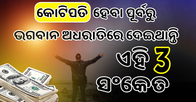 ପୂର୍ବରୁ କୁହାଯାଇଛି ଭଗବାନ ଦୟାବାନ ହୋଇଥାନ୍ତି ସେ ଧନ ଦୌଲତ ଛପରଫାଡି ଦେଇଥାନ୍ତି । ଭଗବାନଙ୍କ ସହିତ ଲୋକଙ୍କର ଭାଗ୍ୟ ଦୁଇ ଜଣ ମିଶିଗଲେ ସେହି ବ୍ୟକ୍ତିକୁ ସଫଳତା ମିଳିବାକୁ ଡେରିହୋଇନଥାଏ । କିନ୍ତୁ ଆପଣ ଜାଣିଛନ୍ତିକି ଭଗବାନବି ଏହି କାମ ହେବପୂର୍ବରୁ ବ୍ୟକ୍ତିକୁ ୩ଟି ସଙ୍କେତ ଅବଶ୍ୟ ଦେଇଥାନ୍ତି । ଏହା ଆମେ ଆପଣ ମାନଙ୍କୁ କହୁନୁ ଏହା ଆଗରୁ କୁହାଯାଇଅଛିକି ଯଦି କେବେ କୌଣସି ବ୍ଯକ୍ତିର ଭଲ ଦୀନ ଆସେ ତାପୂର୍ବରୁ ତାକୁ ଏହି ତିନୋଟି ସଙ୍କେତ ନିହାତି ମିଳିଥାଏ । ଆପଣଙ୍କର ବି ଏହି ଦୀନ ଆସିପାରେ ଆସନ୍ତୁ ଜାଣିବା ସେହି ତିନୋଟି ସୋପ୍ନ କଣ ।