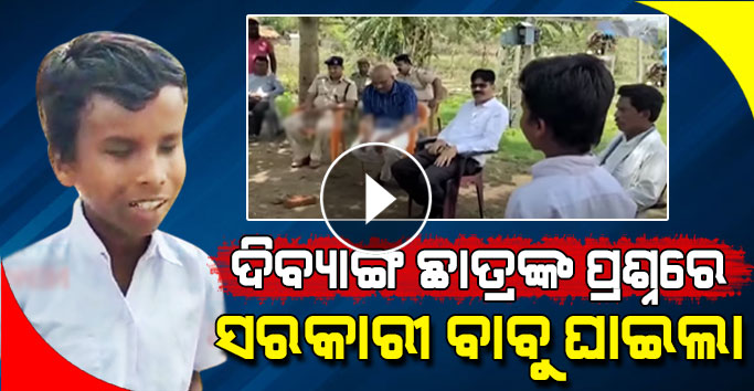 ବିଡିଓ, ତହସିଲଦାର, ସବକଲେକ୍ଟର ସମସ୍ତେ କଣ ଅନ୍ଧ ହୋଇଗଲେ କି ପ୍ରଶାସନିକ ଅଧିକାରୀଙ୍କୁ ପ୍ରଶ୍ନ କରିଛି ଏହି ଦିବ୍ୟାଙ୍ଗ ବାଳକ । ଆମ ସମସ୍ଯା କଣ କାହାକୁ ଦେଖା ଯାଉନାହିଁ ? ୩୦ ଜଣ ପିଲାଙ୍କ ପାଇଁ ଜଣେ ମାଷ୍ଟର ଦରକାର ବୋଲି ଦାବି କରିଛି ଏହି ଦିବ୍ୟାଙ୍ଗ ବାଳକ । କଳାହାଣ୍ଡି ଜିଲ୍ଲାର ଧର୍ମଗଡ ବେହେରାଗୁଡା ଉଚ୍ଚ ପ୍ରାଥମିକ ବିଦ୍ୟାଳୟର ଷଷ୍ଠ ଶ୍ରେଣୀର ଛାତ୍ର ହେଉଛନ୍ତି ଯଶବନ୍ତ ଛତ୍ରିଆ ।