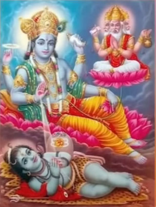 ତେବେ ବିଶନୁ ପୁରାଣ ଅନୁଯାଇ ଭଗବାନ ନାରାୟଣଙ୍କ ମଥାରୁ ବାହାରୁଥିବା ପ୍ରଚଣ୍ଡ ତେଜ କାରଣରୁ ଭଗବାନ ଶିବଙ୍କର ଜନ୍ମ ହୋଇଥିଲା। ଏଥିସହ ଭଗବାନ ନାରାୟଣଙ୍କ ନାଭୀରୁ ବାହାରୁଥିବା ତେଜରୁ ଭଗବାନ ବ୍ରହ୍ମାଙ୍କର ଜନ୍ମ ହୋଇଥିଲା । ତେବେ ଅପର ପକ୍ଷରେ ଶିବ ପୁରାଣ ଲେଖା ଅନୁଯାଇ ଭଗବାନ ନାରାୟଣଙ୍କ ଜନ୍ମ ଏପରି କିଛି ଭାବେ ହୋଇଥିଲା । ଭଗବାନ ଶିବ ଥରେ ନିଜ ଆଣ୍ଠୁ ଘସୁଥିବା ସମୟରେ ତାଙ୍କ ଆଣ୍ଠୁରୁ ବାହାରୁଥିବା ମଳିରୁ ଭଗବାନ ବିଶନୁଙ୍କର ଜନ୍ମ ହୋଇଥିଲା ।