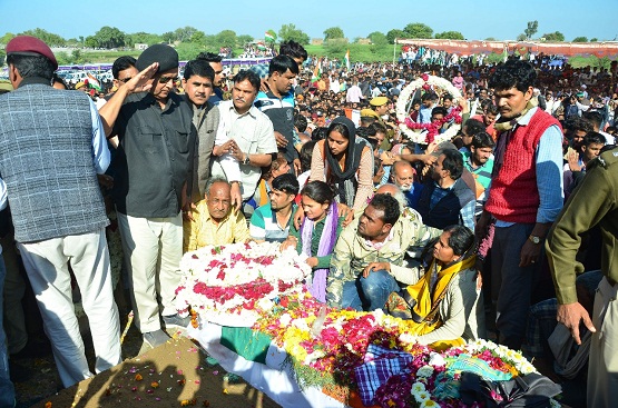 ଏହା ପରେ “ଭାରତ ମାତାର ଜୟ” ଏବଂ “ପାକିସ୍ତାନ ମୁର୍ଦାବାଦ”ର ନାରେ ଲାଗାଇଲେ । ଏହାକୁ ଶୁଣି ସେଠିଥିବା ଲୋକମାନେ ବି ନାରେ ଲଗାଇବାକୁ ଲାଗିଲେ । ବଡ ପୁଅ ଅଜୟ ଏବଂ ଛୋଟ ପୁଅ ଋଷଭ ମୁଖାଗ୍ନି ଦେଲେ ।