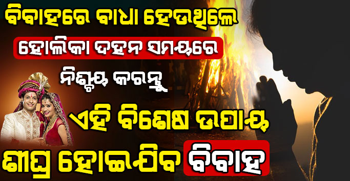 ହୋଲିକା ଦହନର ସମୟ ଅତ୍ୟନ୍ତ ମହତ୍ବପୂର୍ଣ୍ଣ ବୋଲି ମାନାଯାଏ । ଏହି ସମୟରେ କରା ଯାଉଥିବା କିଛି ଉପାୟ ଆପଣଙ୍କୁ କେବଳ ଆର୍ଥିକ ସମସ୍ଯା ନୁହେଁ ବରଂ ବ୍ୟକ୍ତିଗତ ସମସ୍ଯାରୁ ମଧ୍ୟ ମୁକ୍ତ କରିଥାଏ । ସେଥିମଧ୍ୟରୁ ବିବାହ ନହୋଇ ପାରିବା ଏକ ବଡ ସମସ୍ଯା ଅଟେ । ଯଦି ଆପଣଙ୍କ ସହ ମଧ୍ୟ ବିବାହକୁ ନେଇ ସମସ୍ଯା ଲାଗି ରହୁଛି ତେବେ ହୋଲିକା ଦହନ ସମୟରେ ଏକ ବିଶେଷ ଉପାୟ ଦ୍ଵାରା ତାହା ଦୂର ହୋଇପାରିବ । ତେବେ ଚାଲନ୍ତୁ ଜାଣିବା କେମିତି କରିବେ ଉପାୟ ।