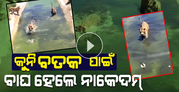 ତିନୋଟି ମହାବଳ ବାଘଙ୍କୁ ନାକେଦମ୍ କରିଦେଲା କୁନି ବତକ ଛୁଆ, ଦେଖନ୍ତୁ ଏହି video